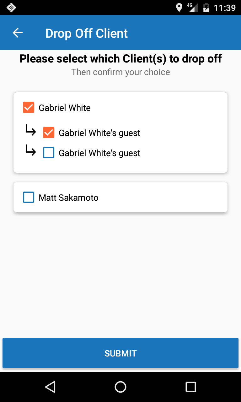 Our app enables drivers to start a trip, pick up and drop off riders and their guests independently, deal with no show riders, enter personal mode, and end trips. All of these actions are accomplished effortlessly from the apps main page. We help drivers reduce errors by only providing actions that can currently be accomplished. For example a driver can not drop off a rider if there is no rider in their vehicle.
