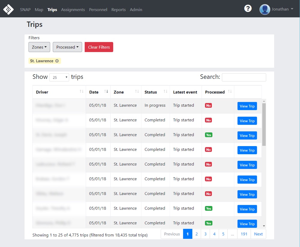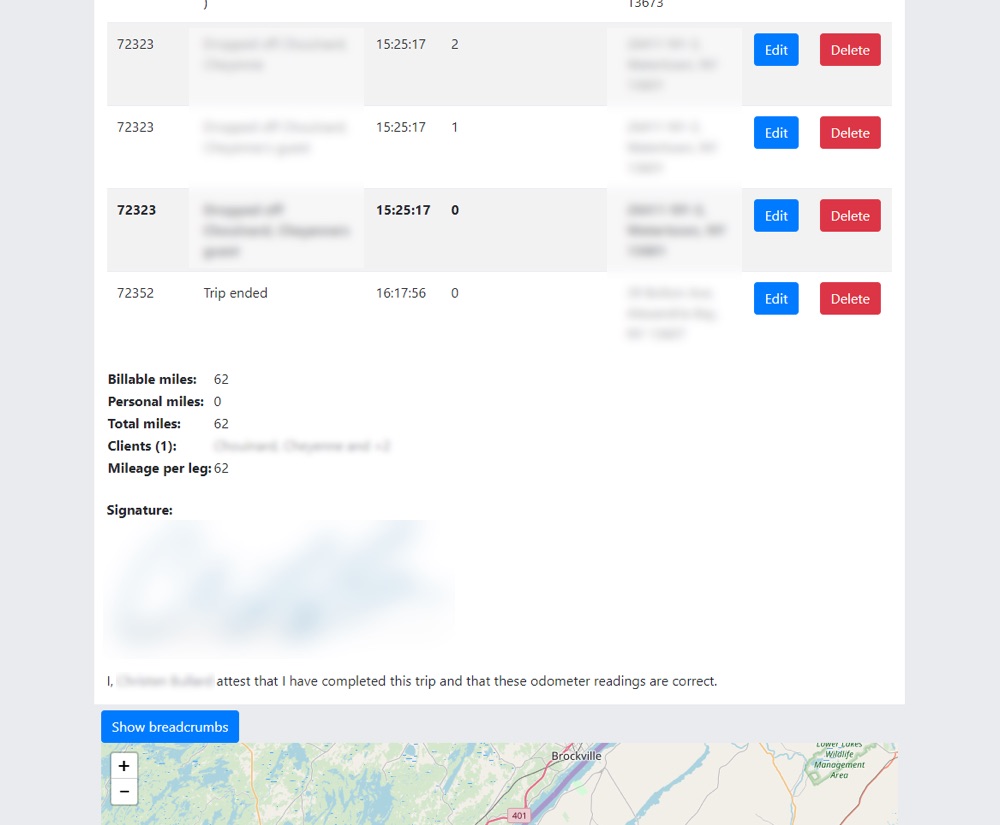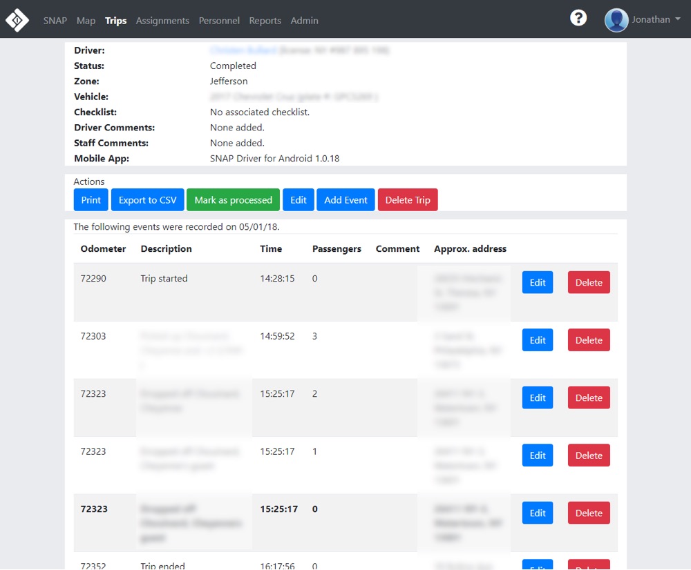 Creating trip schedules and managing drivers in real time gives dispatchers a means to ensure clients have been picked up and if need be assign new drives to unscheduled trips the same day. Our goal is to provide dispatchers with structure when created planned trips for the following days, but to also allow fluidity and the ability to adapt when changes need to be made in real time. Having access to real time information, as well as being able to act on that information within our software is paramount to trip management success.